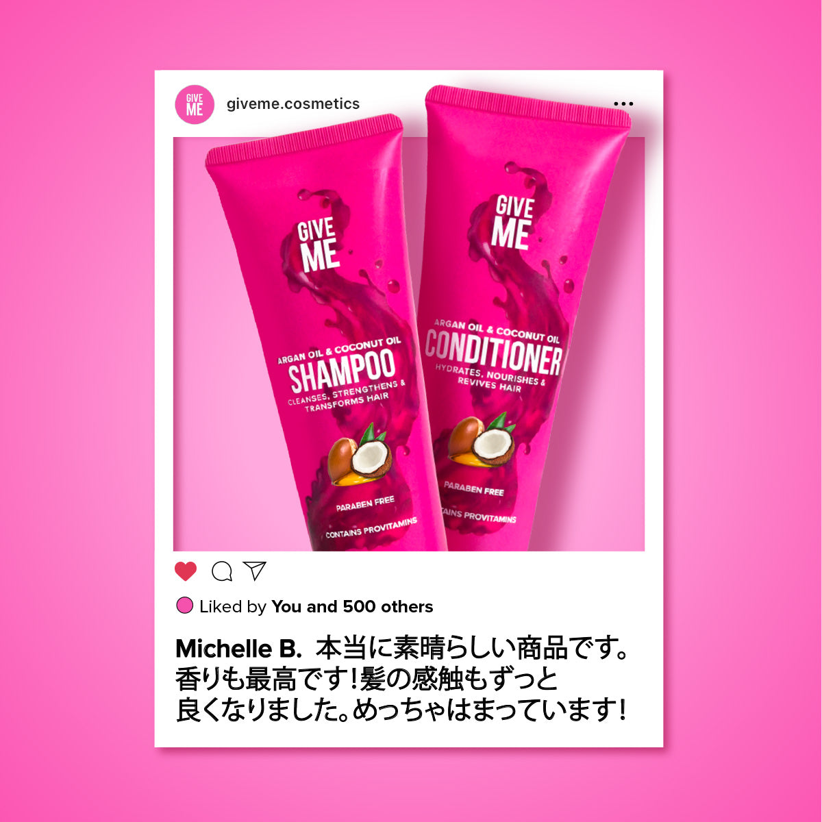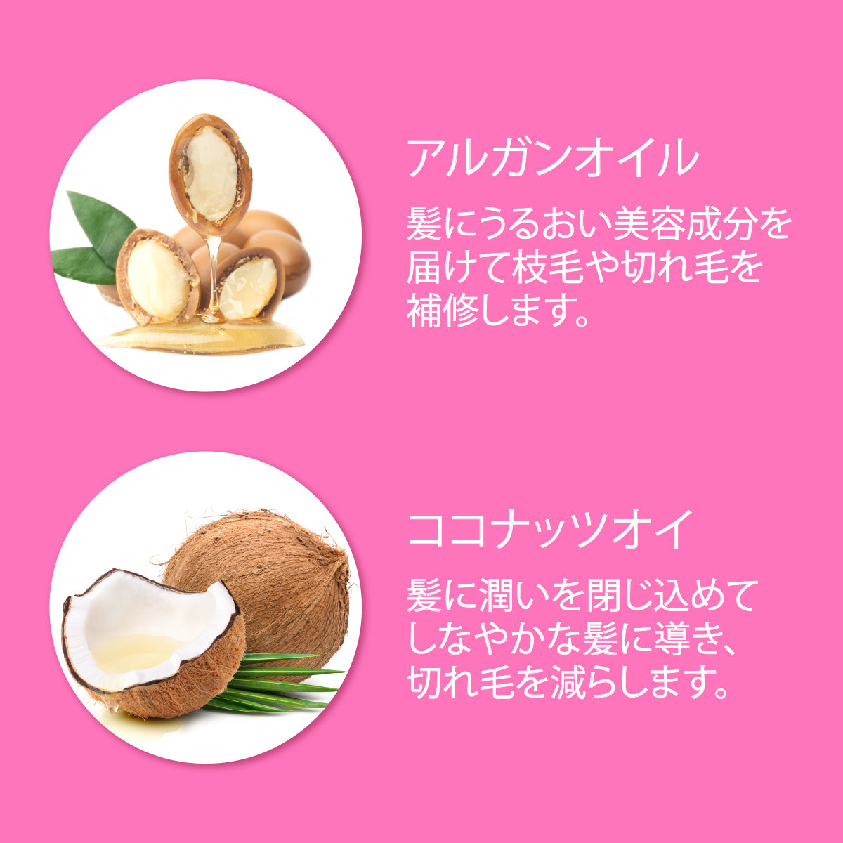 ココナッツオイルとアルガンオイルの力を活かし、シャンプーとコンディショナーが髪をしっかり保湿し、栄養を与え、健康的な状態に導きます。