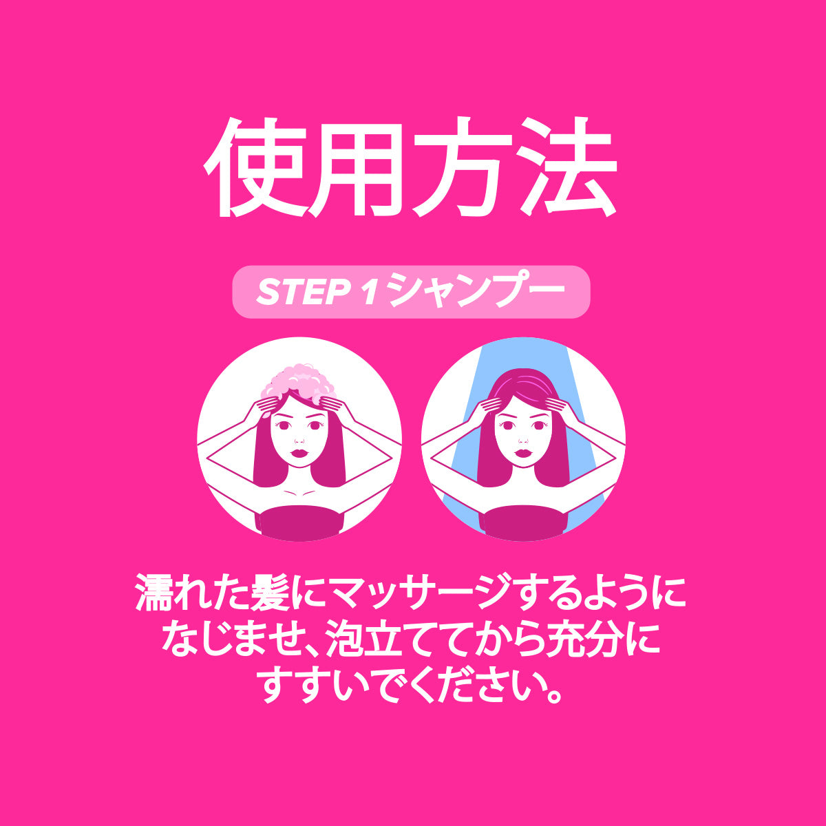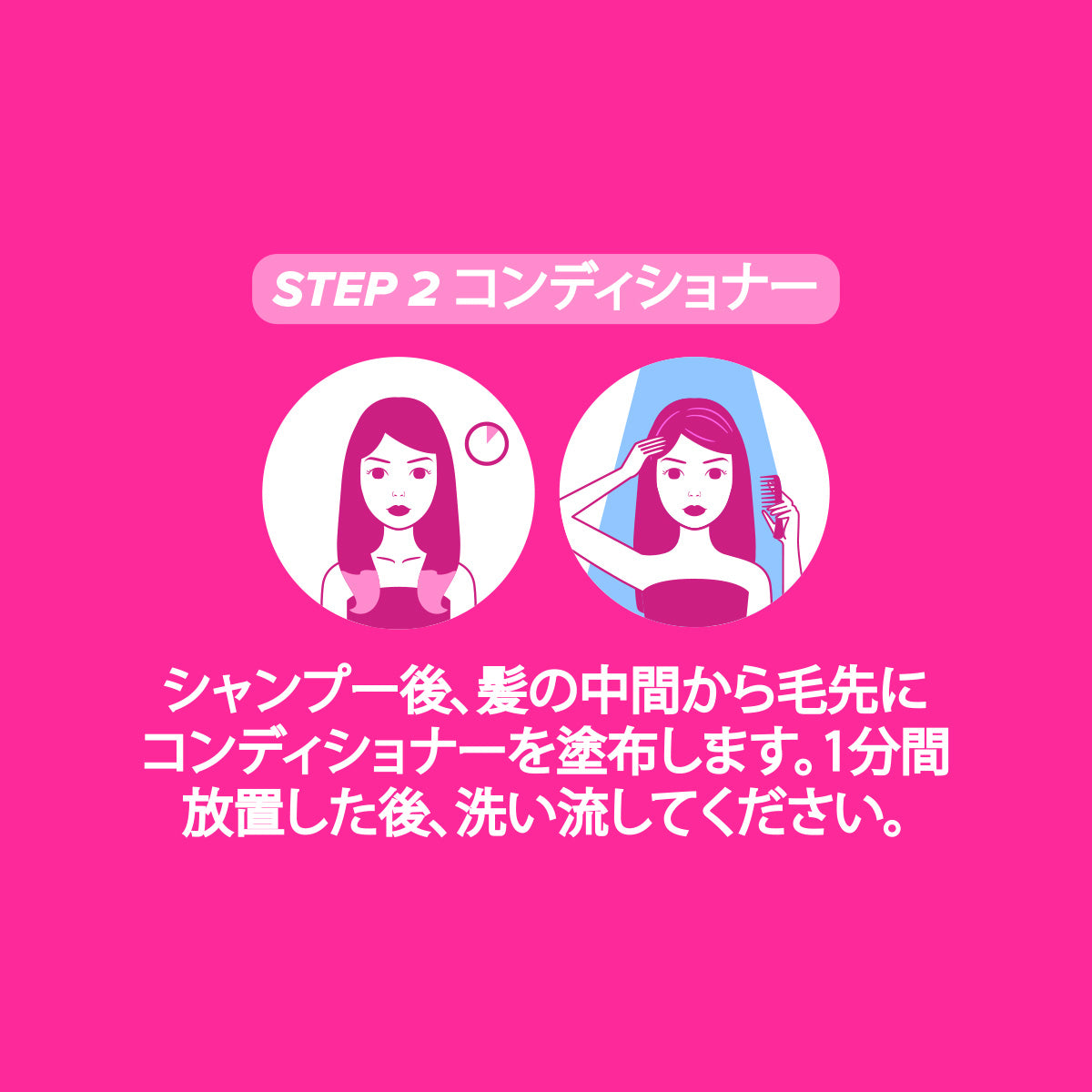シャンプー & コンディショニング してください(シャンプーは2度洗いが効果的です)。その後、いつも通りに髪を乾燥させ、スタイリングしてください。