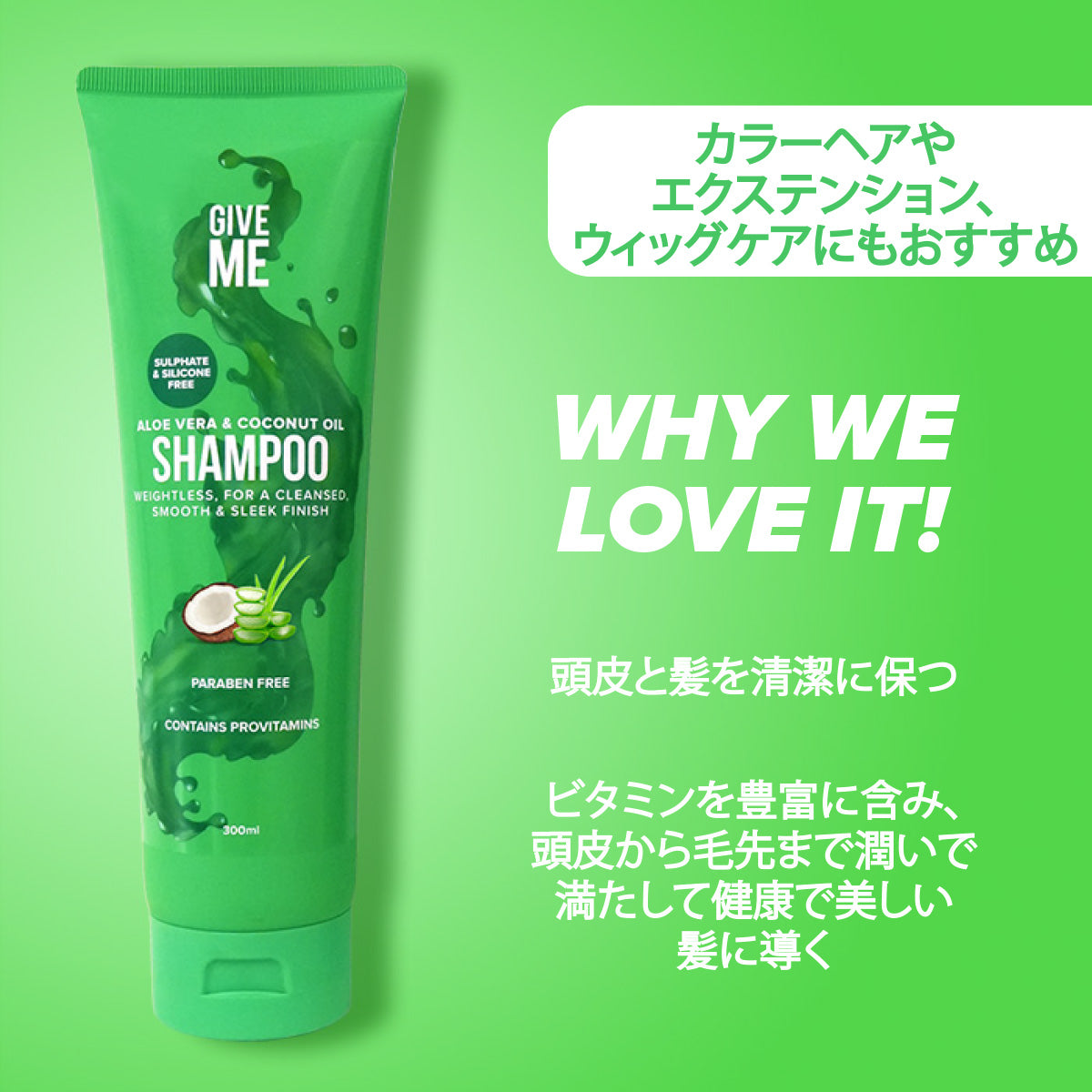 Give Meの サルフェート・シリコンフリー 処方のアロエベラ&ココナッツオイル シャンプーを是非お試しください!